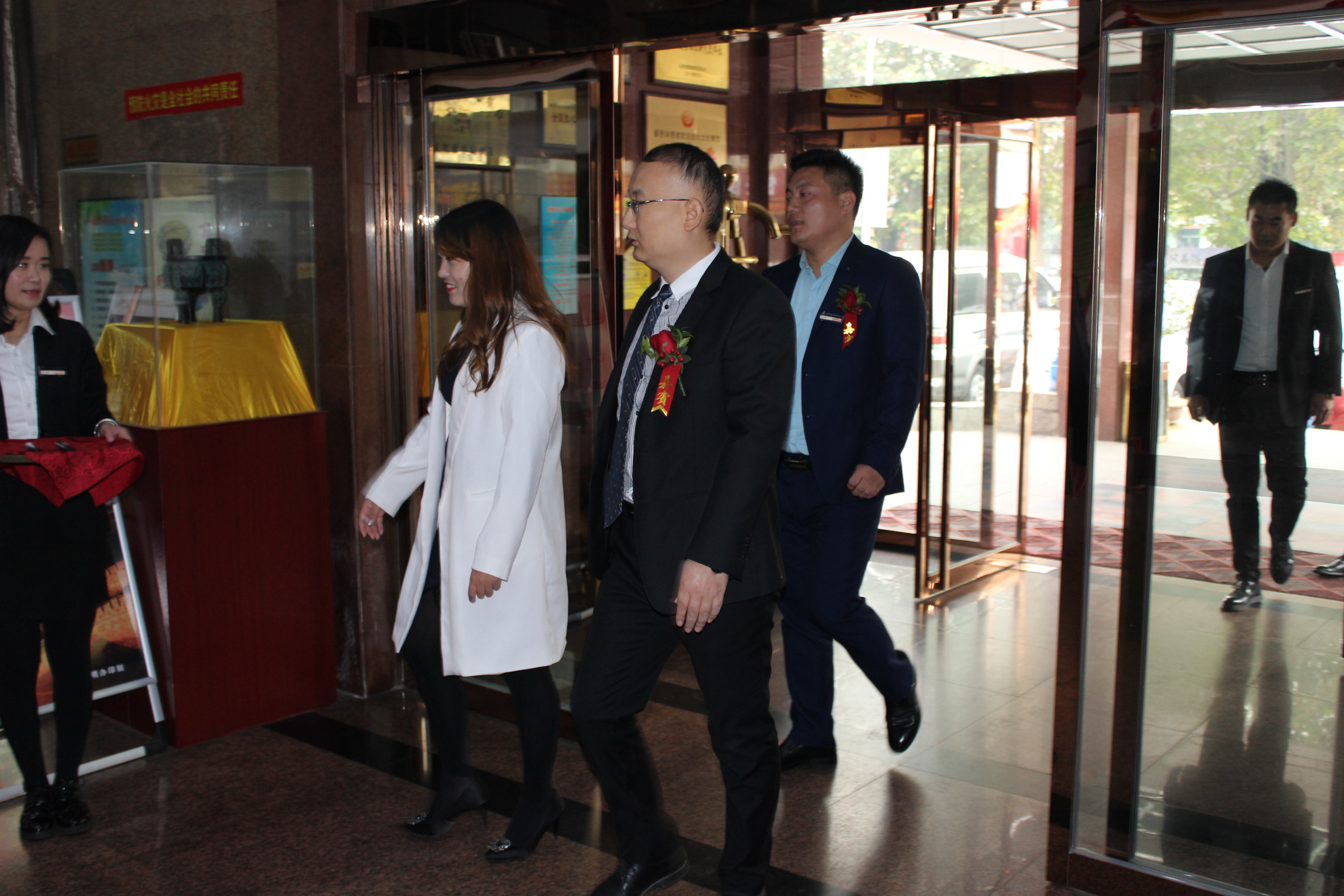 央視山東辦事處主任郝小蘭女士與公司趙總、顏總步入會(huì)場(chǎng)