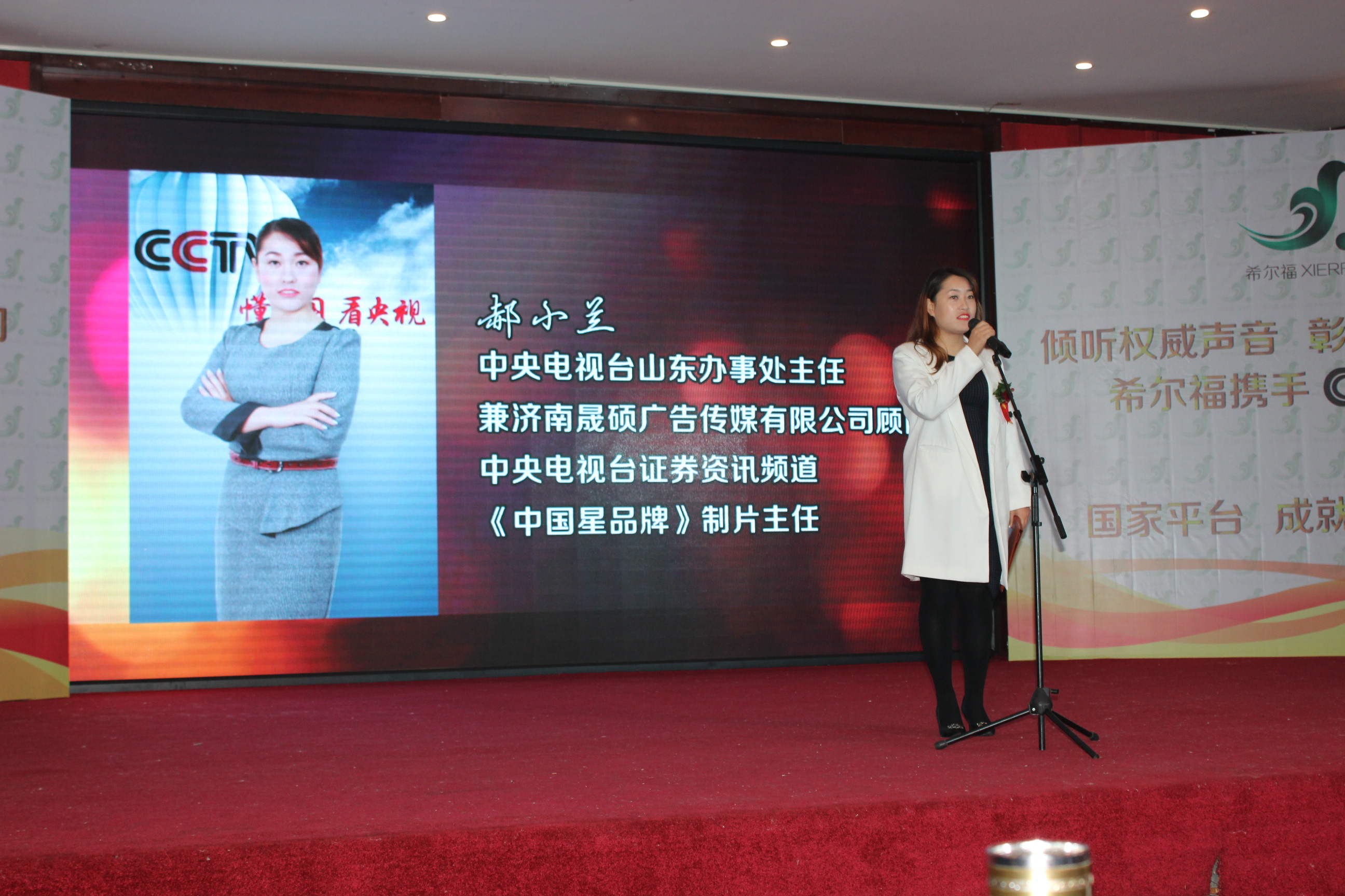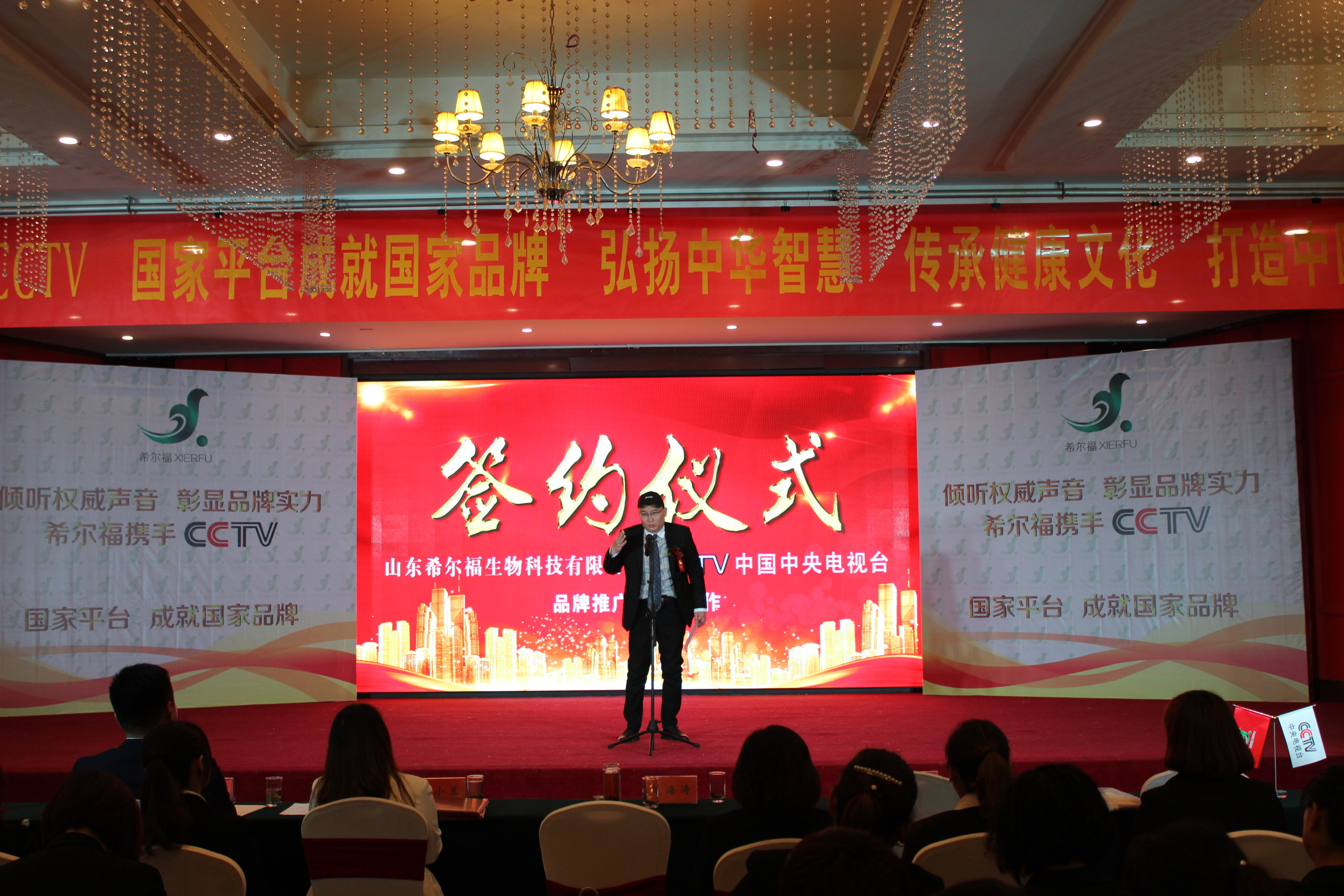 2017年10月26日,山東希爾福生物科技有限公司與CCTV中央電視臺(tái)戰(zhàn)略合作簽約儀式在兗州興隆賓館二樓金色大廳隆重舉行!中央電視臺(tái)駐山東辦事處主任、中央電視臺(tái)證券咨詢欄目《中國(guó)星品牌》制片主任郝小蘭女士親臨現(xiàn)場(chǎng)并致辭。