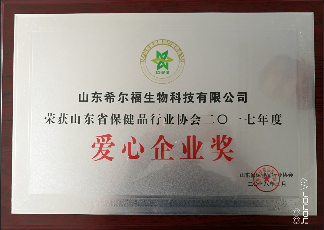 “銀色世紀(jì)之夜”山東省保健品行業(yè)協(xié)會(huì)公益評(píng)選頒獎(jiǎng)晚會(huì)正在進(jìn)行!山東希爾福生物科技有限公司榮獲愛(ài)心企業(yè)獎(jiǎng)!加油噢!在踐行企業(yè)社會(huì)責(zé)任,奉獻(xiàn)愛(ài)心的道路上永不停息!與愛(ài)同行!幸福永遠(yuǎn)!